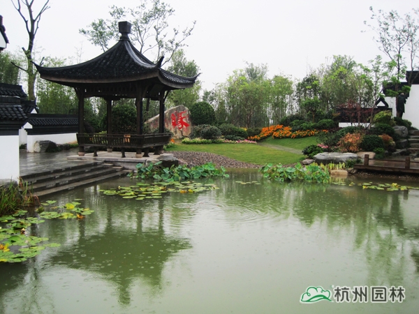 第二屆中國(guó)綠化博覽會(huì)之杭州園,又名“緣園”。以西湖美麗的傳說(shuō)《白蛇傳》為設(shè)計(jì)脈絡(luò),將故事提煉成斷橋相逢、同心定緣、平湖秋月、雷峰夕照四個(gè)精華部分,融入到工程綠化作品中,運(yùn)用多桿叢生植物和木本花境為造景元素,平臺(tái)、小橋、埠頭、沙灘、景石,勾勒水鄉(xiāng)風(fēng)韻;粉墻、黛瓦、圓門、方亭、水榭,追憶江南情懷,由此達(dá)到了景中有情、情中有景,用園林綠化的丹青妙筆描繪出一幅情景交融的江南風(fēng)情畫卷。漫步緣園,仿佛回到千年前的西湖:風(fēng)景如畫、才子佳人、江南煙雨、風(fēng)光旖旎,斷橋之上,許仙與白娘子洋溢纏綿悱惻的浪漫愛(ài)情傳奇……