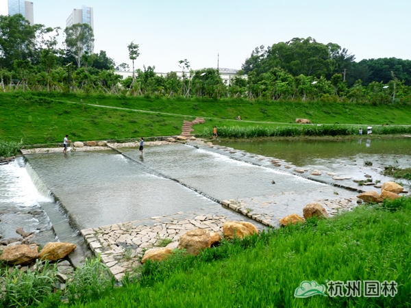 該工程位于深圳市羅湖區(qū)東部深圳水庫壩下,起點(diǎn)為東湖公園翻板閘消力池出口,終點(diǎn)為深圳河三汊河口,整治長度約2.5公里,施工內(nèi)容包括河岸護(hù)坡、景觀園建、綠化種植、給水和電氣、截污管及過河管道等。工程以“生態(tài)治理河流”為景觀設(shè)計主題,打造出一條生態(tài)修復(fù)與園林美景兼具的多彩濱河景觀長廊。