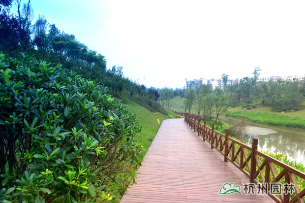 瀘州市玉帶河濕地公園(一期)工程位于四川省瀘州市龍馬潭區(qū),施工內(nèi)容包括完善公園一期120余畝范圍內(nèi)園林道路、植物種植、拱橋、曲橋、水上園路、景觀亭等基礎(chǔ)設(shè)施建設(shè),玉帶河片區(qū)截污干管建設(shè)等。工程于2013年8月開(kāi)工,2014年5月竣工,歷時(shí)9個(gè)月。該工程榮獲“2014年度浙江省優(yōu)秀園林綠化工程銀獎(jiǎng)”。
