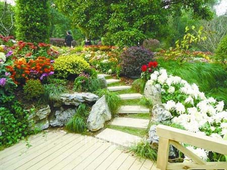 這片鋪滿白色石子的空地,有日本枯山水庭院的感覺(jué),更重要的是,它是孩子們的最愛(ài),一個(gè)個(gè)活潑可愛(ài)的孩子走到這里時(shí)總要盡情地蹦上幾下,或者蹲下去把玩小石子,開(kāi)心的笑容,讓留戀花間的蝴蝶也黯然失色??蓯?ài)的孩子、潔白的石子、紅色的景墻、燦爛的花卉,這種溫馨的畫(huà)面唯有在自家的庭院里,才會(huì)這樣的無(wú)拘無(wú)束。
