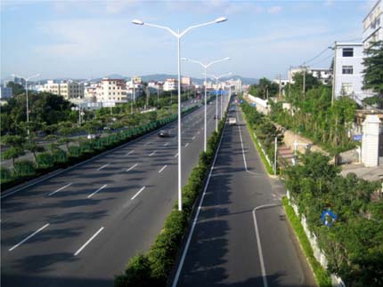 國道205深圳段改建景觀綠化工程G5402標(biāo)段,是深圳市迎接“第26屆世界大學(xué)生運(yùn)動(dòng)會(huì)”的重點(diǎn)迎賓大道,位于國道205深圳段龍崗區(qū)地鐵三號(hào)線愛聯(lián)地鐵站至坪地與惠州市交界處,道路全長約20公里,綠化總面積210000平方米,施工內(nèi)容包括綠化種植、綠化噴灌與管道安裝等,由杭州市園林綠化工程有限公司承建。自2010年8月開工,至2011年8月竣工,歷時(shí)12個(gè)月。該工程最大的特色和亮點(diǎn)為:“以人為本,尊重自然”、“ 處處有綠葉,無處不飛花”等自然生態(tài)的設(shè)計(jì)理念貫穿始終;中央綠化帶位于高架橋下,長勢茂盛的各類植物形成一條繽紛絢麗的彩帶擁簇著高架橋段,使整條橋段與綠化景觀有機(jī)融合。2012年,該工程榮獲中國風(fēng)景園林學(xué)會(huì)“優(yōu)秀園林綠化工程金獎(jiǎng)”。