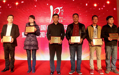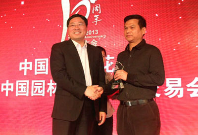大會(huì)揭曉并頒發(fā)了“突出貢獻(xiàn)獎(jiǎng)”、“貢獻(xiàn)獎(jiǎng)”、“最佳合作伙伴獎(jiǎng)”、“2013年優(yōu)秀參展獎(jiǎng)”、“2013年產(chǎn)品金獎(jiǎng)”等多個(gè)獎(jiǎng)項(xiàng),以此表彰一批多年來為中國(蕭山)花木節(jié)的成功舉辦做出積極貢獻(xiàn)的個(gè)人和單位。其中,杭州市園林綠化工程有限公司榮獲“最佳合作伙伴獎(jiǎng)”、“2013年優(yōu)秀參展獎(jiǎng)”,參展的產(chǎn)品“紅寶石”紫薇和“火煉金丹”桂花榮獲“2013年優(yōu)秀產(chǎn)品獎(jiǎng)”,總經(jīng)理張炎良上臺(tái)領(lǐng)取了獎(jiǎng)牌。