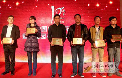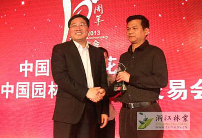 大會揭曉并頒發(fā)了“突出貢獻獎”、“貢獻獎”、“最佳合作伙伴獎”、“2013年優(yōu)秀參展獎”、“2013年產品金獎”等多個獎項,以此表彰一批多年來為中國(蕭山)花木節(jié)的成功舉辦做出積極貢獻的個人和單位。其中,杭州市園林綠化工程有限公司榮獲“最佳合作伙伴獎”、“2013年優(yōu)秀參展獎”,參展的產品“紅寶石”紫薇和“火煉金丹”桂花榮獲“2013年優(yōu)秀產品獎”,總經理張炎良上臺領取了獎牌。