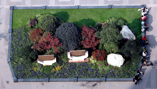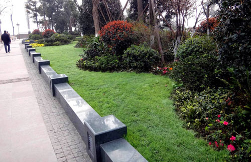 據(jù)李壽仁介紹,保留下來的大樹主要有兩種處理手法:像天竺桂、黃葛樹等幾十年的老樹,在周圍搭建木質(zhì)平臺,既可以保護大樹,又可供游人休息;一些香樟、桂花、銀杏等,則用森林綠整石圍邊,搭配草皮、三色堇、球類、日本紅楓等植物,采用花境的布置手法,建成一個個面積大小不一的花壇,營造出四時風光各不同的江南園林意境。而平滑、細膩的森林綠整石,既是景觀的一部分,又是漂亮的坐凳,兼顧了景觀與實用的功能。