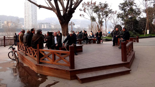 “館驛嘴廣場承載著瀘州這座城市發(fā)展的歷史,見證著這座城市的變遷,其深厚的文化內(nèi)涵,是其他地方無可比擬的,為了更加突出館驛嘴在酒城瀘州中的地位,我們將其設計基調(diào)定位為奢華?低調(diào),充分發(fā)揮其‘城市會客廳’的功能,將其打造成瀘州的一張‘新名片’。”李壽仁說,“具體實施方法可以用以下八句話來概括:綠量不變,空間增大;設施完善,內(nèi)容豐富;景觀打造,高質(zhì)提升;文化滲入,生態(tài)優(yōu)先?!焙啙?、明確的設計定位,賦予了館驛嘴煥然一新的景觀風貌。