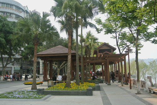 經(jīng)過近半年的不懈努力,如今,這里的景觀效果已初見成效,生態(tài)自然的園林美景,濃郁厚重的人文氣息,使這里再次成為酒城瀘州的一處標志性景觀,成為廣大市民的一處休閑樂園。站在高處的建筑上往下看,新建成的館驛嘴廣場猶如一艘動感十足的航船,迎風破浪,向著江心直行而去;而廣場上無數(shù)的游人,則如船上的乘客,悠閑愜意地欣賞著江中的美景。
