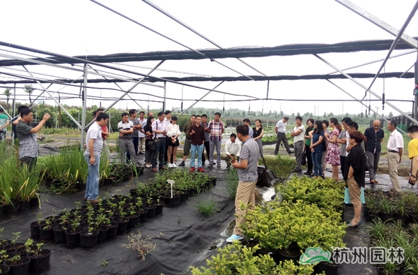 下午,杭州市園林綠化股份有限公司研發(fā)中心技術(shù)員劉華紅帶領(lǐng)大家來到畫境?徑山生產(chǎn)中心進(jìn)行實(shí)地參觀。結(jié)合研發(fā)中心開展的一個(gè)除草劑試驗(yàn),劉華紅向大家介紹了試驗(yàn)的設(shè)計(jì)思路、處理設(shè)置,展示了拔綠(Barricade)、莠去津(Atrazine)等4種除草劑不同濃度處理的除草效果,初步指出正常用量的拔綠對(duì)多種庭院植物容器苗的除草效果較好。