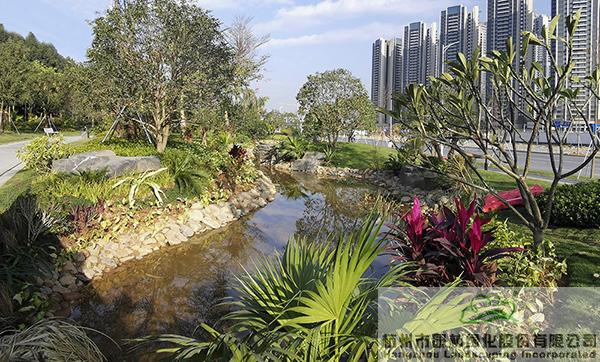 “項(xiàng)目將海綿城市理念融入公園建設(shè),園路鋪裝采用透水混凝土,下雨時(shí)雨水可快速滲透,路面不積水;旱溪景觀則在下雨時(shí)蓄水,雨水可用于植物的日常澆灌,干旱時(shí),鋪滿鵝卵石的水底又與周邊豐富的植物營(yíng)造出另一種園林意境?!彪S著葉偉華的介紹,項(xiàng)目建設(shè)中許多隱藏的細(xì)節(jié)不斷展現(xiàn),生態(tài)造園的理念進(jìn)一步深入人心。