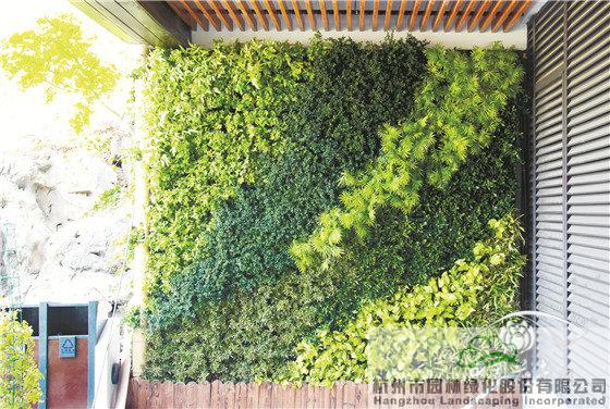 位于展園富春山居負(fù)一層門口右側(cè)的垂直綠墻,選用小葉梔子、龜甲冬青、黃金海岸線柏、火焰南天竹、哈伯南天竹、常春藤、吊蘭等植物,以“絲”為筆,用流暢的線條勾勒出浙江絲綢之美,體現(xiàn)浙江絲綢之韻,描繪出一幅柔軟飄逸的浙江絲綢之畫(huà)。