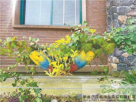 梅秋里的房屋多為兩到三層建筑,但建筑風(fēng)格、外墻立面均有區(qū)別,因此,在進(jìn)行景墻施工時(shí),根據(jù)每家的房屋建筑特色選擇了不同的材料和植物配置手法。如,建筑外立面為紅色的,景墻以紅色磚為主,搭配月季、佛甲草等植物;建筑外立面為灰色的,景墻以淺黃色磚為主,結(jié)合小木樁或仿竹籬笆,搭配石竹、美女櫻等植物;建筑外立面有大理石點(diǎn)綴的,景墻以桐廬石為主,輔以裝飾過(guò)的輪胎,點(diǎn)綴佛甲草、常春藤等植物。不同的處理手法,使得家家戶(hù)戶(hù)的景墻既有連續(xù)性,又有各自的風(fēng)格。