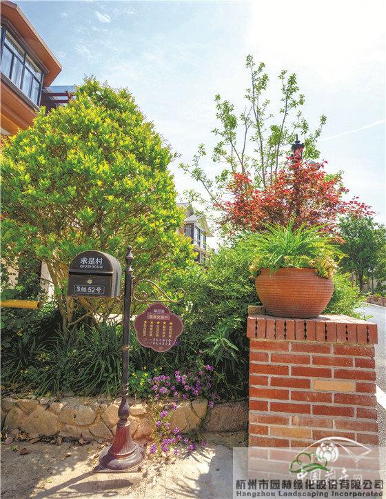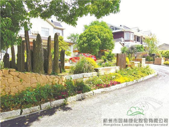 景墻邊的植物配置同樣有講究。利用銀杏、桂花、梅花、紅楓等植物營(yíng)造上層空間,這些植物具有遮擋作用,能夠?yàn)橥ピ籂I(yíng)造一定的私密空間。通過(guò)樹(shù)狀、球狀、攀援、傘狀、字母等各種形態(tài)的月季,金冠女貞球、龜甲冬青球、銀姬小蠟球、藍(lán)莓、八仙花、小葉梔子、翠蘆莉、花葉千鳥(niǎo)花、藍(lán)山鼠尾草、紫葉狼尾草等小喬灌木,在打造中層空間的同時(shí),和美女櫻、金娃娃萱草、花葉玉蟬花、花葉香桃木、紫菀、澤蘭、礬根、五彩絡(luò)石、石竹等下層空間植物一起裝飾和襯托景墻,使家家戶(hù)戶(hù)的景觀(guān)更加豐富多變。