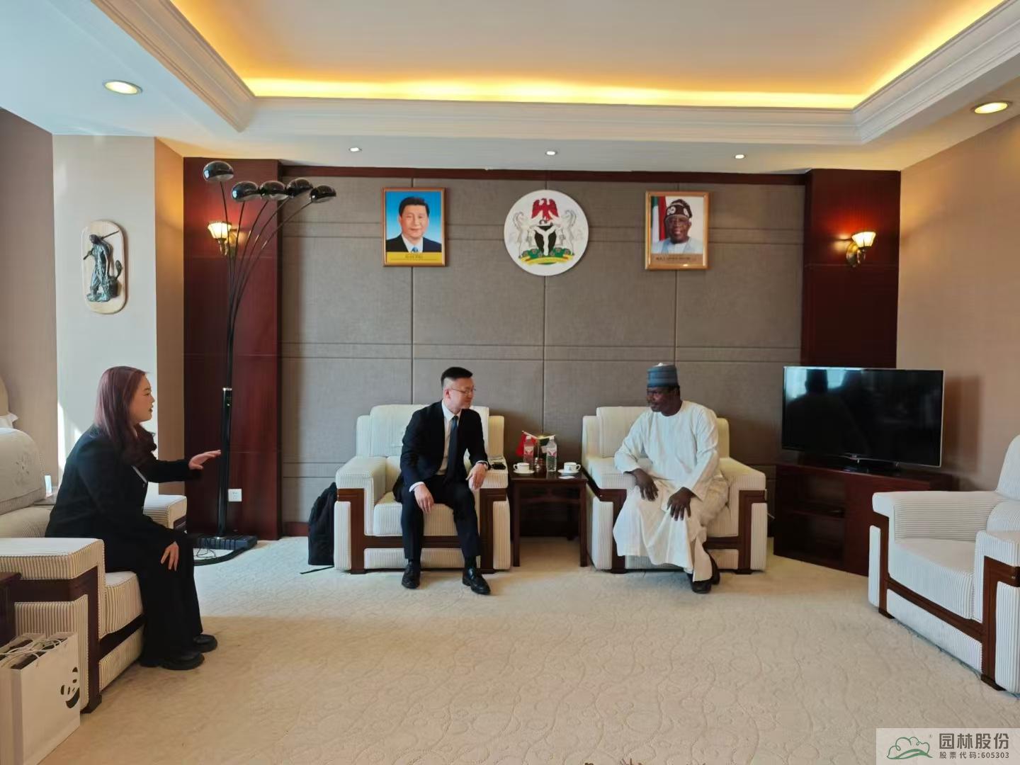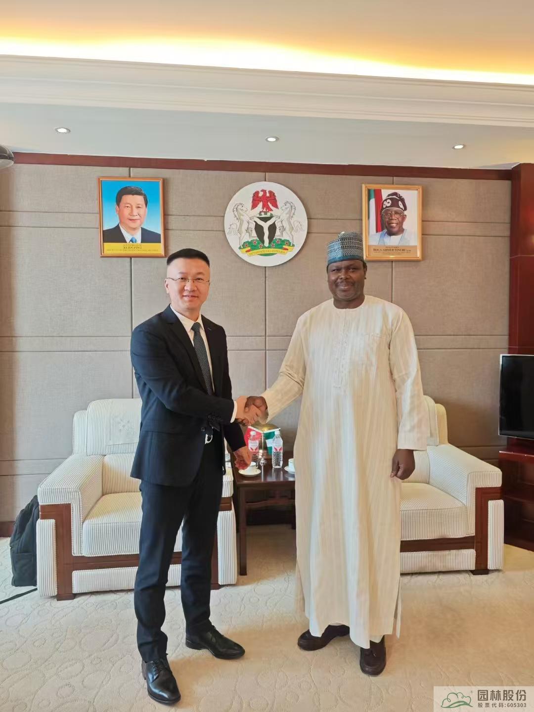 2024年9月,在杭州第三屆全球數(shù)字貿(mào)易博覽會(huì)-“數(shù)智中非”產(chǎn)業(yè)對(duì)接會(huì)上,園區(qū)已取得“尼日利亞國(guó)家館”正式授權(quán)。此次拜訪尼日利亞駐華大使館,陳振華與駐華大使巴巴加納·瓦基勒(Babagana Wakil)就國(guó)家館建設(shè)、農(nóng)產(chǎn)品貿(mào)易、投資合作等議題進(jìn)行了深入交流。
